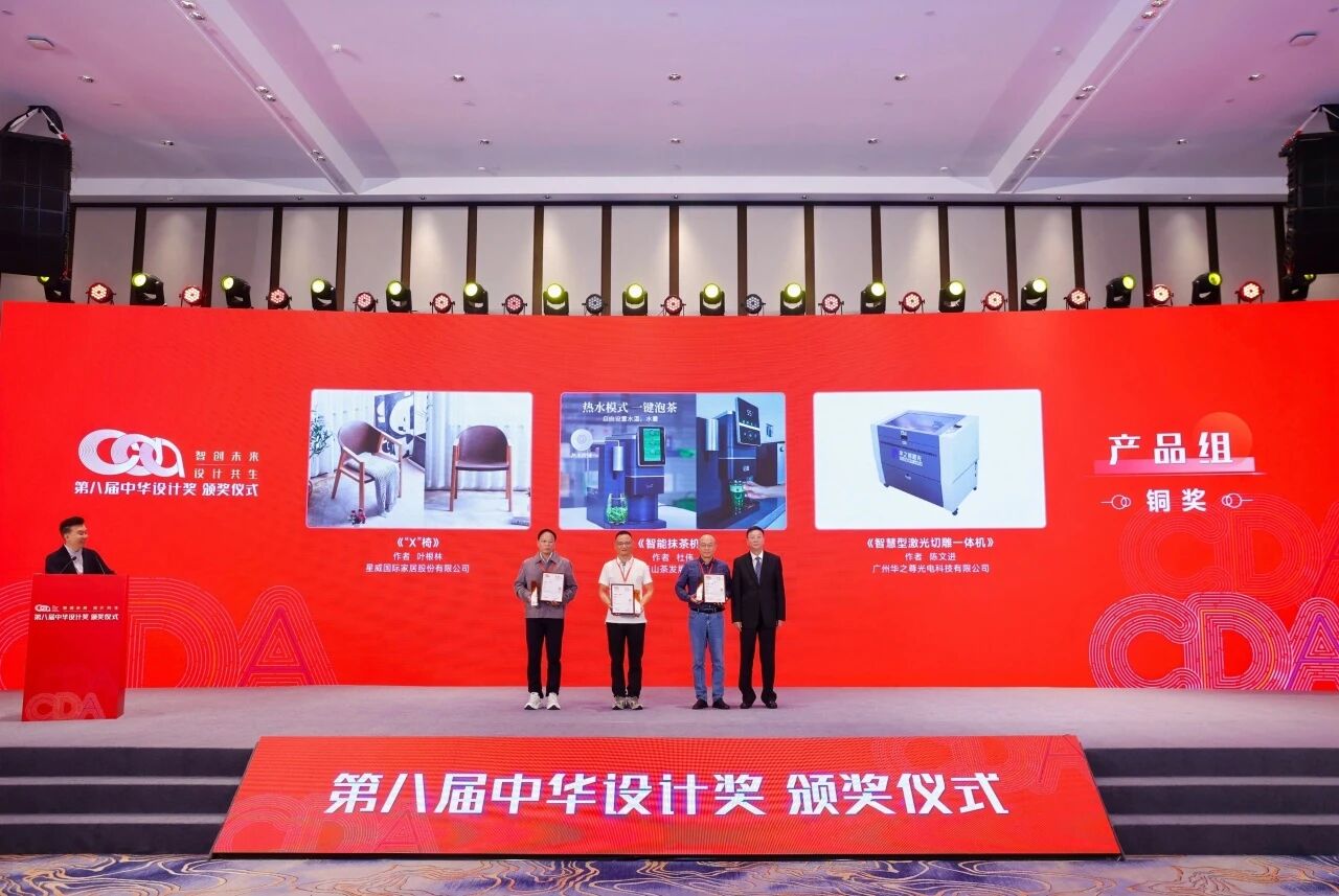 2025年11月12日,第八届中华设计奖颁奖盛典在浙江・宁波・镇海隆重举行。在这场代表中国设计界最高水准的赛事中,广州华之尊光电科技有限公司研发生产的智慧型激光切雕一体机HZZ-V3000凭借卓越的创新设计和领先的技术性能,从众多参赛作品中脱颖而出,成功斩获产品组铜奖。展会现场,全国人大常委会副委员长陈昌智亲临华之尊展区指导,在详细了解产品性能后,连声称赞:"很棒!"